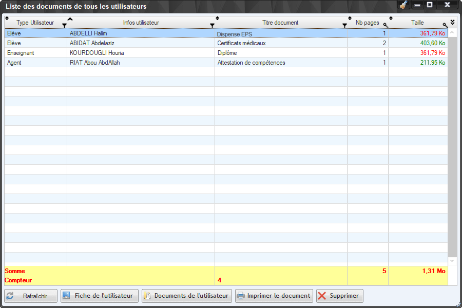 1 - Liste des documents associés aux utilisateurs